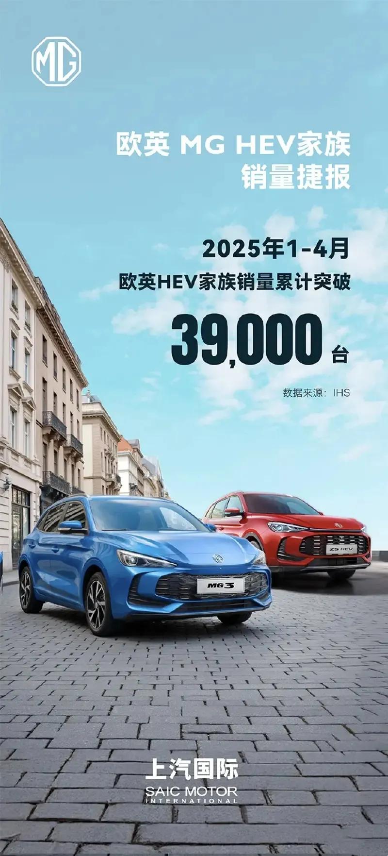 今日,上汽集团在社交媒体发文称,旗下上汽MG欧洲HEV家族在2025年前四个月展现出强劲的市场竞争力,销量突破3.9万辆。这一成绩不仅彰显了上汽MG在欧洲新能源汽车市场的深厚底蕴,更标志着其在混合动力领域的技术与产品策略获得了欧洲消费者的广泛认可。